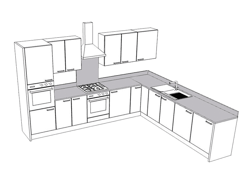L-Shape Worktop, upstands & standard splashback plus sink & hob cut out. Includes laser template, delivery and installation