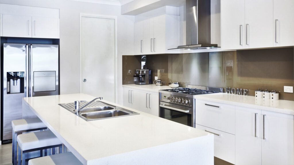 Straight Worktop, upstands & standard splashback plus sink & hob cut out. Includes laser template, delivery and installation